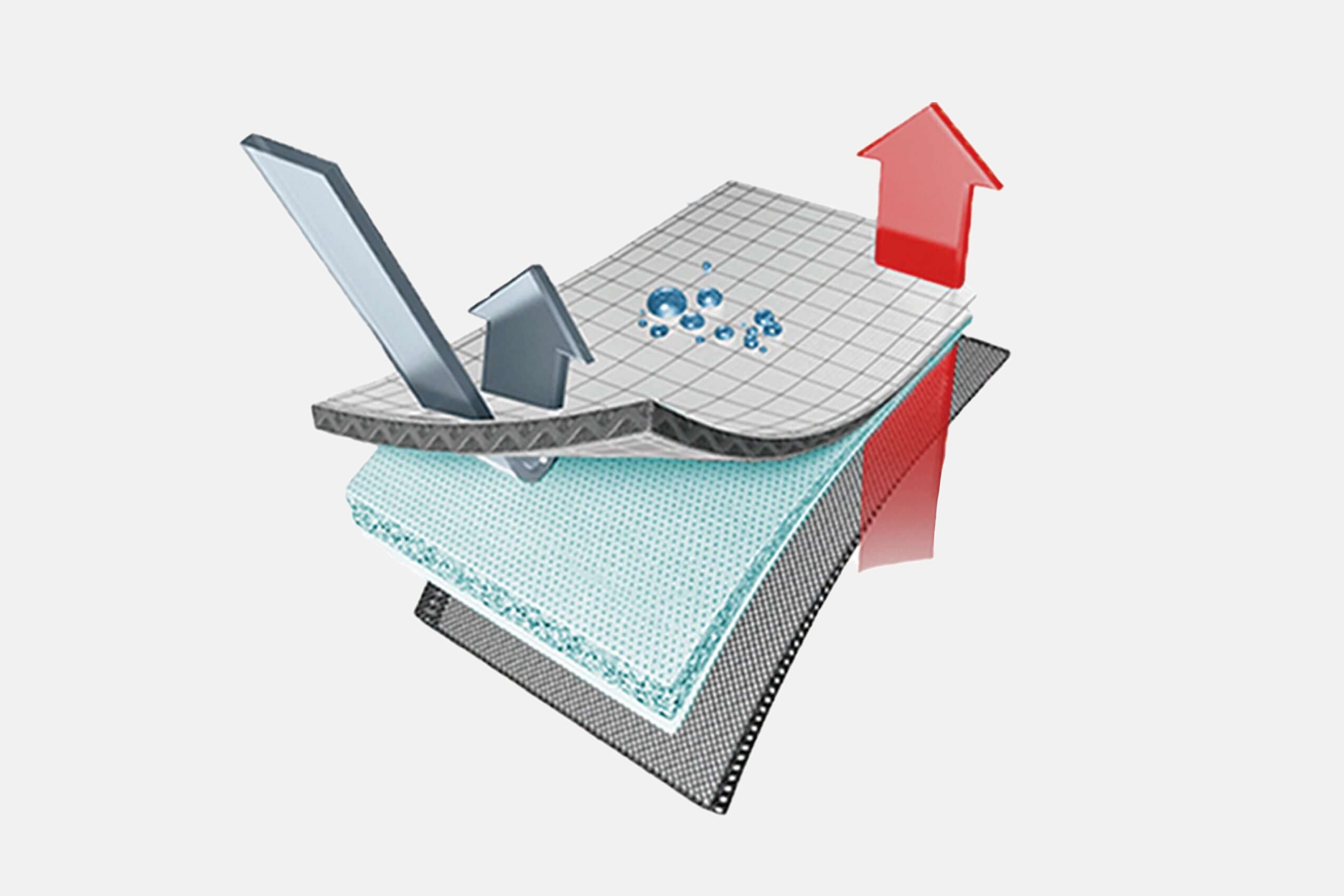 Our performance fabric 2-layer laminated shell fabric offers superior waterproofing and breathability withg a super tough woven outer and our 10k/8k membrane. The fabric keeps you dry even during the most intense sessions.