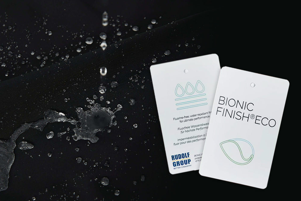 All of Capelin Crew's fabrics are treated using a PFC-Free, eco friendly DWR treatment. Water beads off instead of soaking in, improving waterproofing, and keep the fabric working at maximum breathability